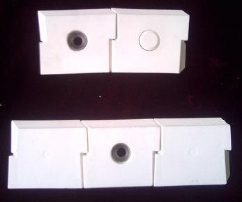 焊接型互壓耐磨陶瓷是用耐高溫粘膠將中間帶孔的氧化鋁陶瓷片粘貼在管道內(nèi)壁,同時配合鋼碗與鋼板焊接工藝透過小孔將陶瓷牢固地焊接在金屬基體上。為保護焊點,上面再旋上陶瓷蓋帽。每塊瓷片不但互壓互插,而且每塊瓷都有正、反梯形角度,使瓷塊之間緊密連接,無縫隙。